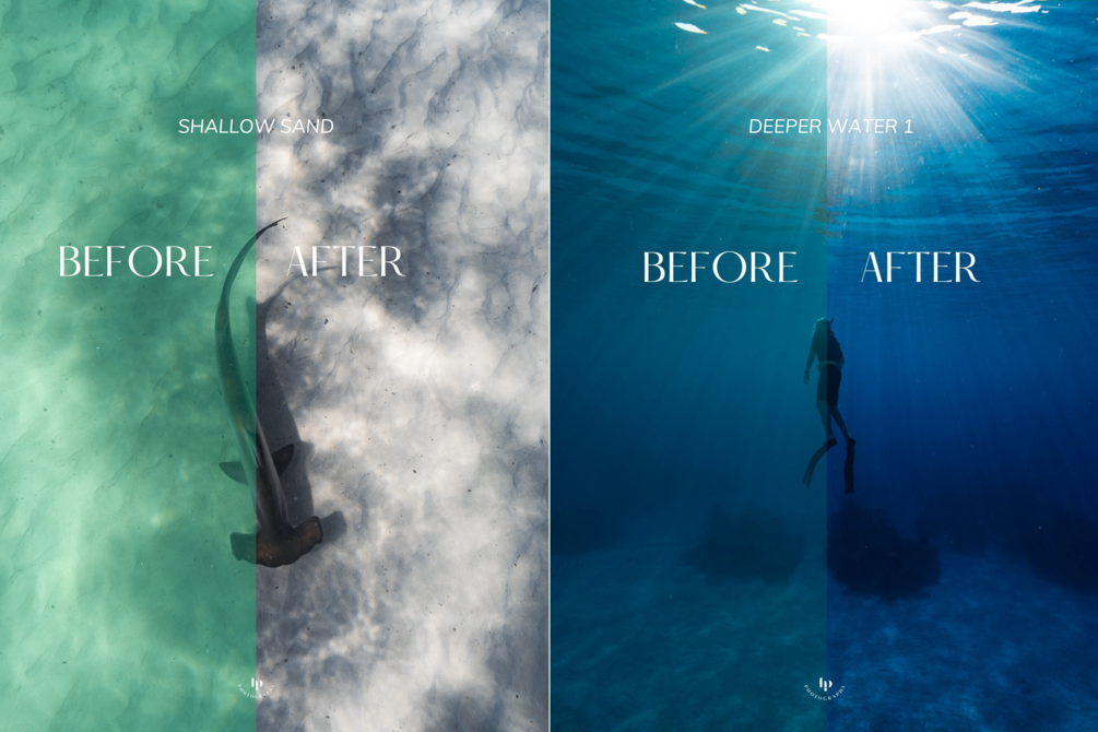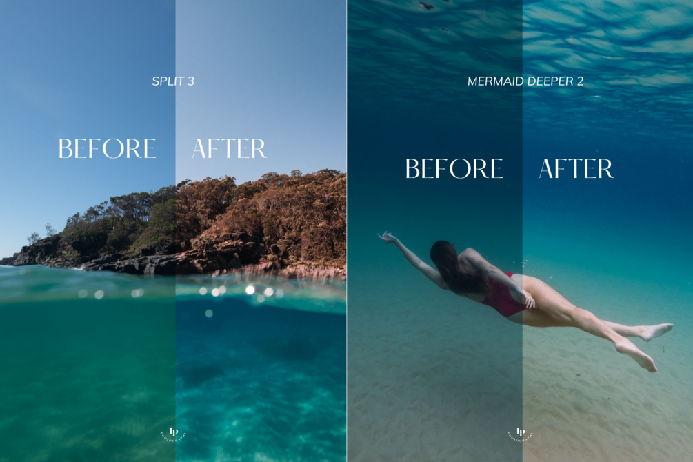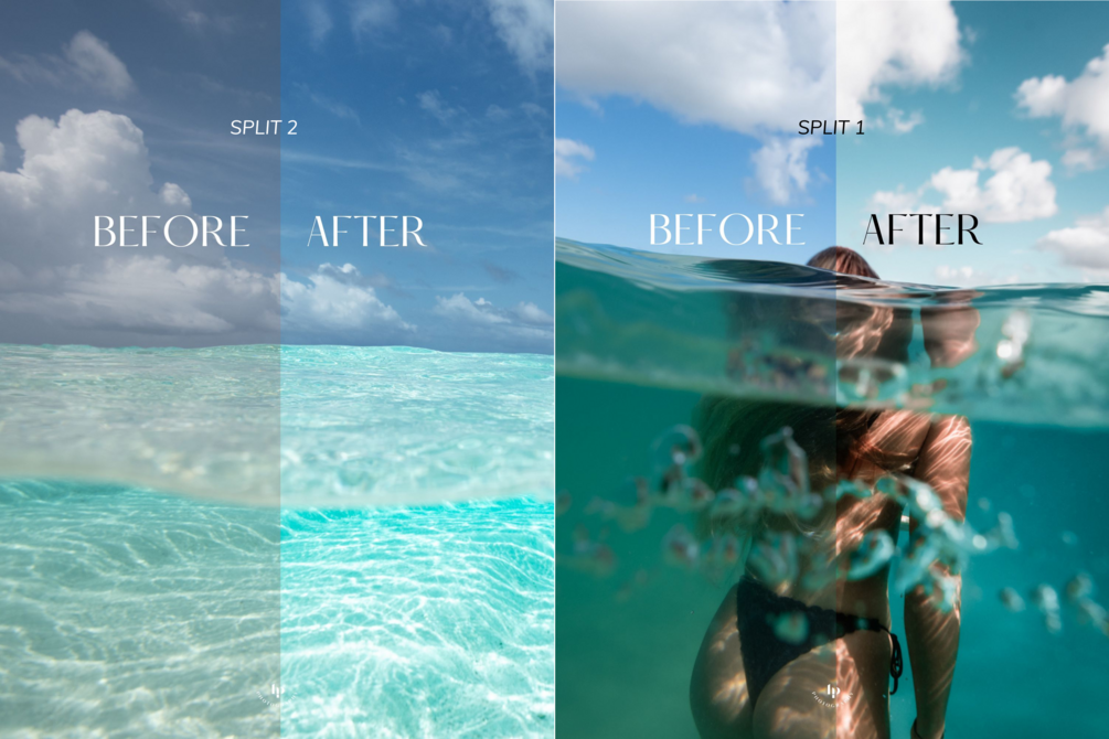 This pack is designed to be a complete preset pack for any kind of underwater photo including deeper water, split images, and scenes including mermaids.